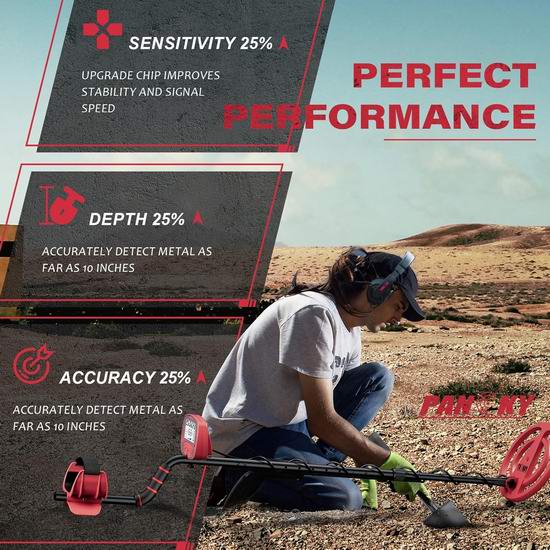PANCKY金属探测器是一款功能强大的探测工具,配备五种不同的模式:全金属模式、光盘模式、记忆模式、珠宝模式和精准定位器,帮助您轻松开始寻宝之旅。采用升级的第二代 DSP 芯片,检测速度、灵敏度和准确性提升了 25%,能够快速精确地定位地下深达 10 英寸的目标金属,适合追寻隐藏的财富。10 英寸 IP68 防水搜索线圈让您可在浅水区探索宝藏,背光 LCD 显示屏便于夜间或弱光环境下操作,显示目标类型、深度和灵敏度等信息。人体工程学设计的轻便结构适合不同身高的用户,配备探测手提包、钢铲、耳机和高容量电池,非常适合旅行、露营和度假使用。