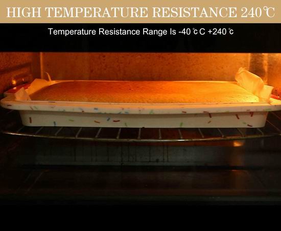 采用食品级硅胶材质,安全无毒无味,不含BPA,安全温度-40至+446℉(-40至+230℃),不粘易清洗,可在烤箱和冰箱中安全使用,洗碗机安全,适用于制作面包、蛋糕、饼干、布丁、冰糕等。