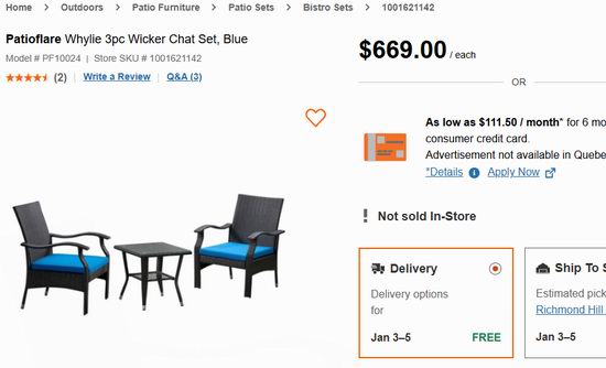 白菜价!历史新低!Patioflare Whylie 藤编户外休闲桌椅3件套2.8折 187.52加元包邮!HomeDepot同款售价669加元!
