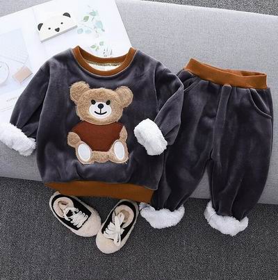 男童95%棉长袖卡通熊图案加厚羊毛衬里套头衫和长裤 13.59加元(原价 16.99加元)