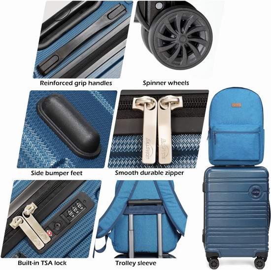白菜价!历史新低!Aklsvion 20英寸 PC+ABS 拉杆行李箱+背包+洗漱包套装3.6折 58.26加元包邮!