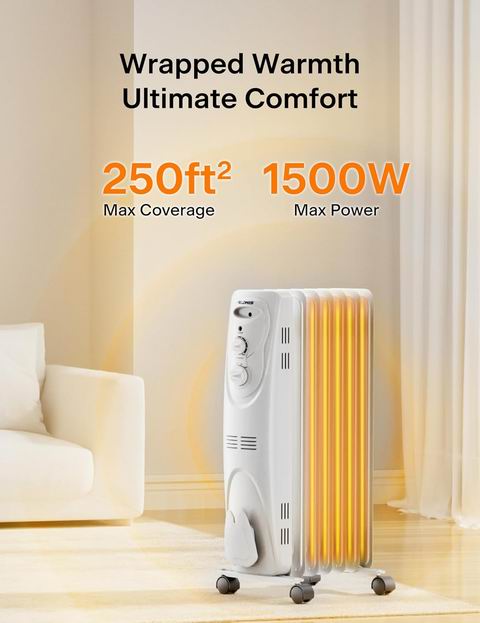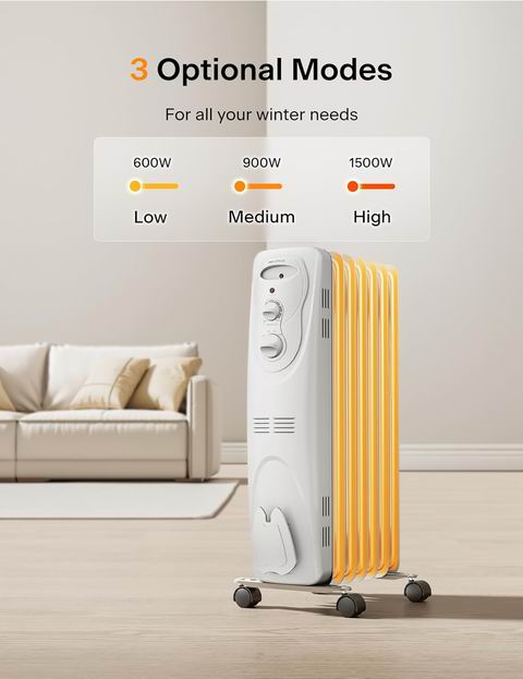 一款 1500W 便携式全屋辐射取暖器,提供 600/900/1500W 三档功率与机械可调温控器,便于按需控温并兼顾节能;配备前置提手与 4 个重型万向轮,房间间移动方便;运行安静,适合睡眠、工作等需要低噪环境的场景(不建议在浴室、洗衣房等空间使用);内置过热保护与倾倒断电开关等安全设计,并提供 1 年制造商保修。