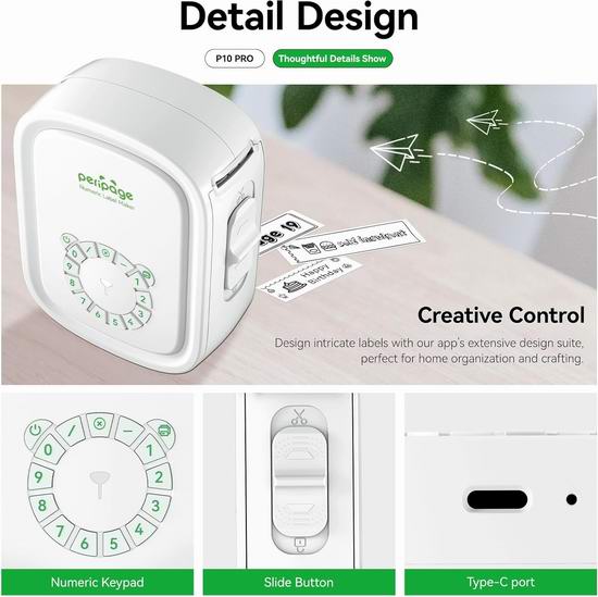这款标签打印机采用不含BPA的无墨打印技术,无需碳粉或墨水。内置高容量电池,支持无线打印,便携方便。可通过蓝牙与iOS和安卓设备兼容,提供超过20种字体、20种边框、18种语言和500多个图标。您可以自定义标签,添加文本、条形码、二维码、边框、时间戳、图案和图片。内置数字键盘,无需蓝牙连接也可打印数字标签。这种独特的设计使其成为随时随地快速便捷贴标的理想之选。