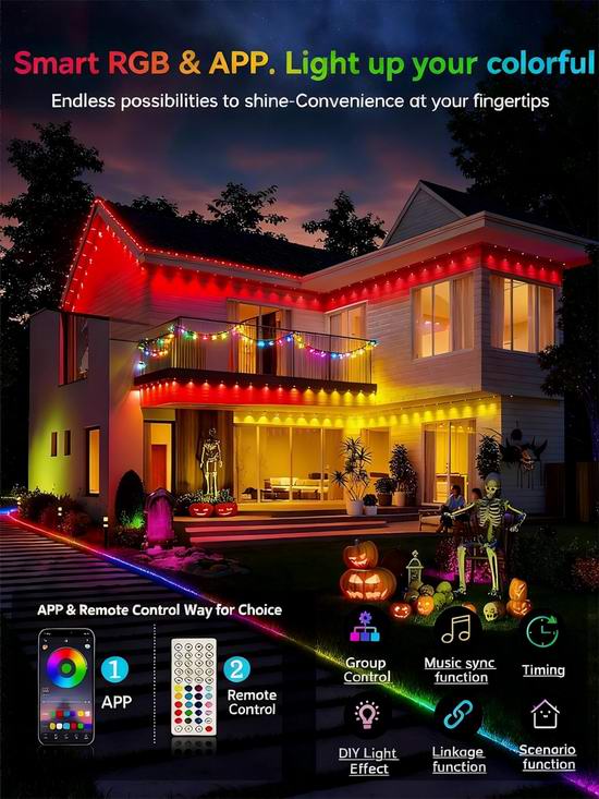 这款户外灯带采用 IP67 防水等级和抗紫外线材料,即使在最恶劣的天气条件下也能正常工作。设计可在-20°C 至 60°C的温度范围内可靠运行,包括暴风雨、严寒的冬季和酷热的夏季。灯带具有60,000 小时的使用寿命,可提供可靠持久的照明。可通过APP和遥控器进行操控,具有多种预设灯光模式、1600万种颜色选择,以及自定义模式和定时器功能。独特的三角棱镜设计带来清晰耀眼的照明效果,让您的家日夜闪耀夺目。配备 3M 背胶和螺丝安装孔,安装快捷牢固,无需额外工具。24V 低压系统最大限度地降低了触电风险,确保有儿童和老人的家庭安全。
