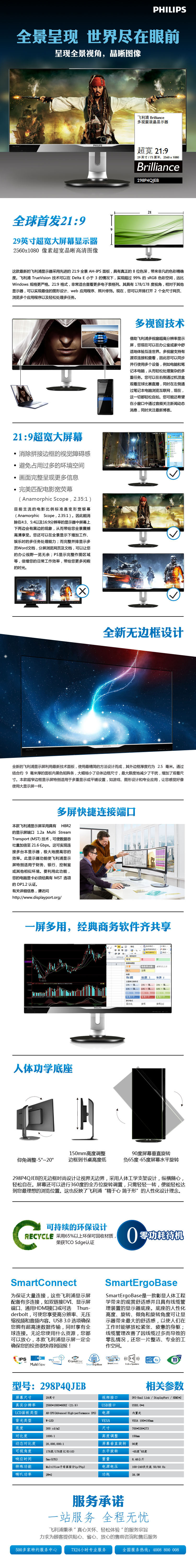 此款Philips 超阔29” 显示屏可提供2560x1080 的水晶般清晰影像和亮丽的色彩,肯定会给您留下深刻印象。其超凡的21:9 AHIPS 萤幕带有超薄镶边,让您以全景观的方式欣赏世界,内有图片介绍: