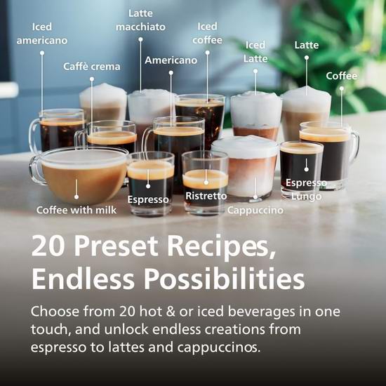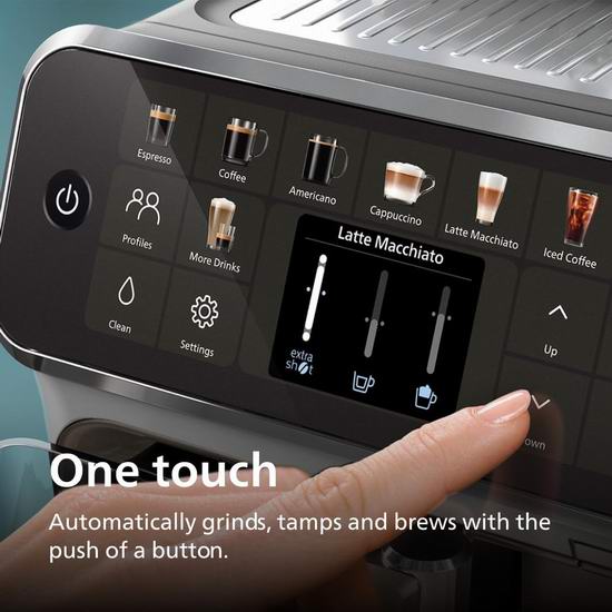 飞利浦 5500 系列全自动意式浓缩咖啡机(EP5544/90)配备 LatteGo 牛奶系统,可一键制作20种冷热咖啡,搭配陶瓷研磨器和 AquaClean 滤网,保证风味纯净。操作通过直观触控屏完成,支持个性化定制及静音冲泡,快速预热,清洗便捷,适合家庭高效享用多样咖啡。