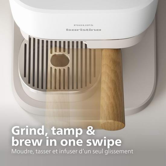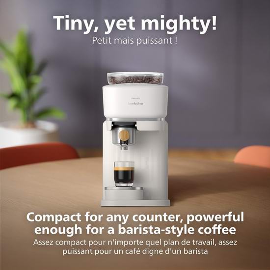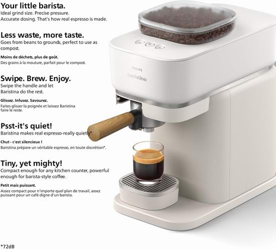这款飞利浦 Baristina 意式浓缩咖啡机,轻松享用真正的意式浓缩咖啡、拿铁、卡布奇诺和美式咖啡等咖啡馆风格的饮品。使用 16 巴压力泵进行研磨、压实和冲泡,从咖啡豆中提取浓郁的味道。从咖啡豆到咖啡杯,只需不到60秒,新鲜研磨的咖啡豆会给您带来最浓郁的咖啡香气。