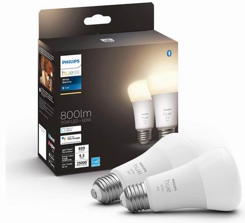 史低价!Philips Hue 白色 9.5W 等效 60W A19  E26 LED 智能灯泡2件 26.98加元(原价 39.99加元)