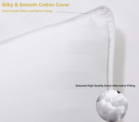 这款QUEEN枕头套装包含两只QUEEN尺寸的枕头,采用精美的滚边和双缝设计,透气性极佳。枕套采用100%棉制成,拥有250针高织密度,可有效防止睡眠中热量积聚,为您带来舒适凉爽的睡眠体验。枕头采用优质的仿羽绒填充物,提供卓越的舒适感,优质的材料让您每晚都能享受无间断的安睡体验,保证您每天早晨精神焕发。无论您是侧睡、仰睡还是趴睡,这款枕头都能提供最大化的舒适支撑,适应每个个体的睡眠需求。枕头填充100%微聚酯纤维,柔软舒适,透气性好且可机洗,清洁方便,枕头的面料柔软亲肤,是您舒适睡眠的不二之选。
