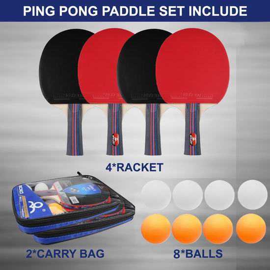 历史新低!CAROSE 高级乒乓球拍4人套装 19.59加元!