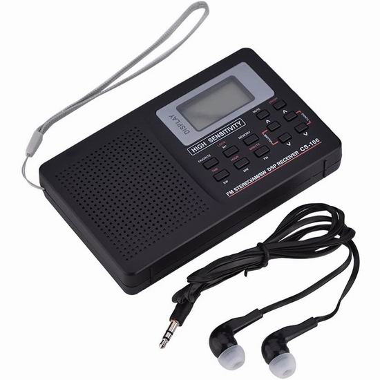 白菜价!历史新低!Lazmin  FM/AM/SW/LW/TV 便携式全频段数字收音机2.1折 8.09加元清仓!带闹钟功能!
