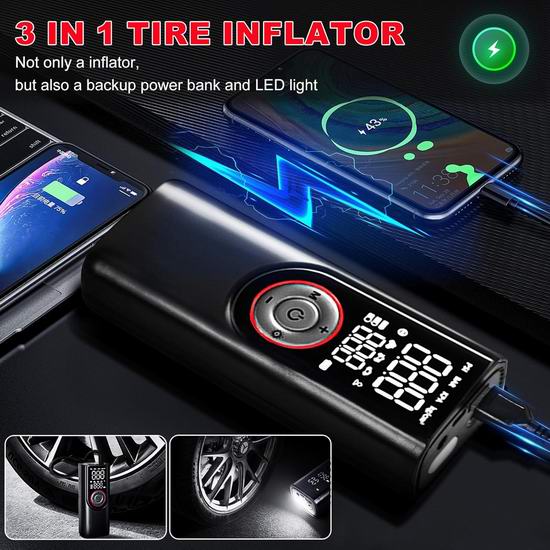 超级白菜!历史新低!Bellabuy 150 PSI 10000mAh 多用途充电宝/车胎充气泵2.3折 15.99加元清仓!