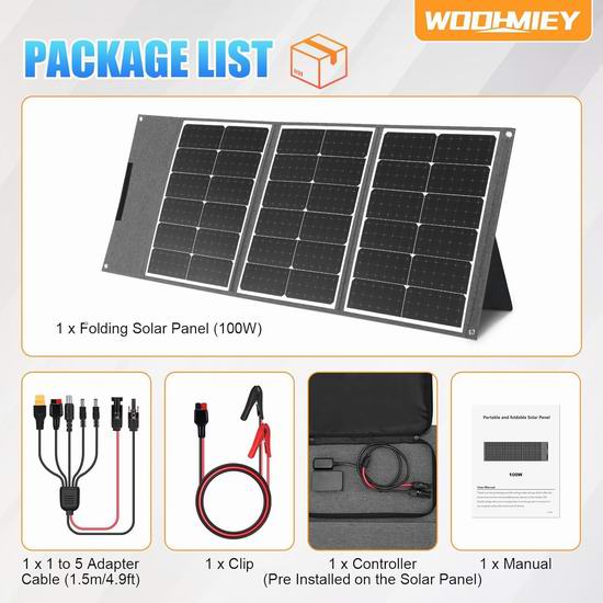 白菜价!历史新低!WODHMIEY 100瓦 户外必备 便携式太阳能电池板2.3折 29.99加元清仓!