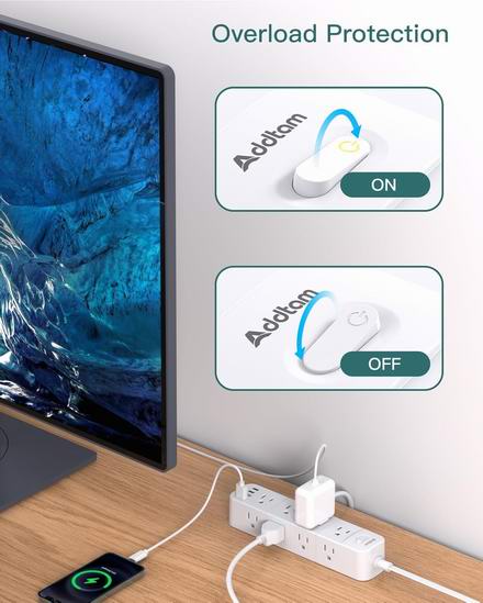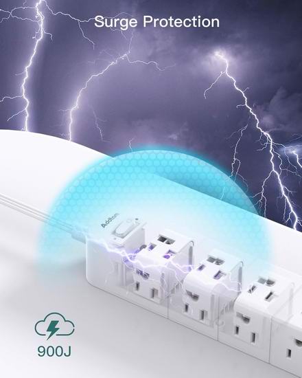 历史新低!Addtam 浪涌保护 12插座 + 4 USB充电插线板4.3折 21.59加元包邮!