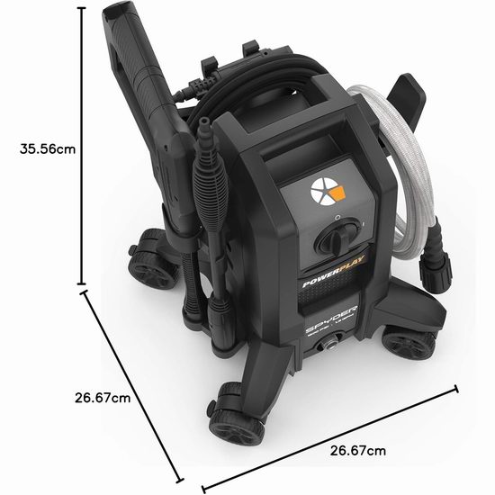 Powerplay Spyder 是市场上最紧凑的高性能高压清洗机,具备高压清洗机的所有功能。它的超紧凑设计和四个360º转向轮子提供了极大的机动性。具有1500 PSI和1.3 GPM的最大冲洗性能,配备Adaptivewash™快速调节扇形喷雾和15英尺的Flexwash™软管(带快速接头),适用于各种清洁任务,还包含洗涤剂瓶。