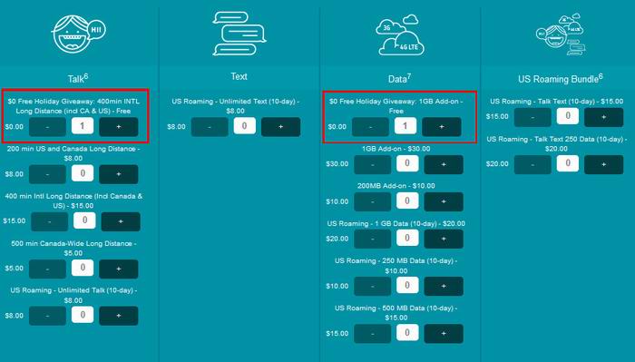 Public Mobile又发福利了,在12月4日-25日期间,新用户加入就自动送价值45加元1GB Add-Ons数据+400分钟Add-Ons国际长途话费,支持转旧号;老用户需登陆后台,购买免费的2个Add-Ons项目(如下图所示),赠送的数据和话费没有失效期,用完为止,点击进入订购页面。