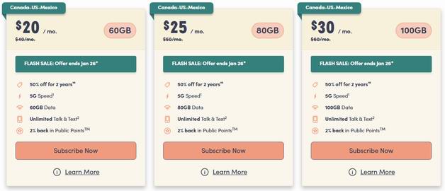 Public Mobile官方活动,1月26日前,新用户可享受5G速度 美加墨漫游60GB流量,仅需20加元(2年后恢复到40加元);