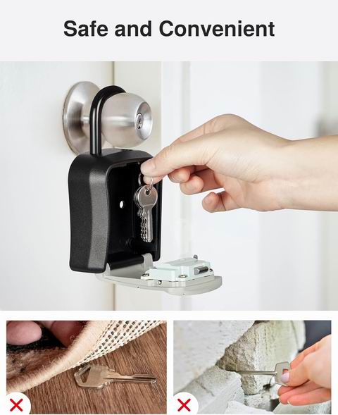采用铝合金与钢材结构打造,坚固耐用,具备防锈、防切割和抗暴力破坏能力,可有效保护钥匙安全。钥匙盒支持两种安装方式,可通过可拆卸锁钩挂在门把手等位置,或使用附带螺丝与膨胀螺栓固定在墙面上;内置可重置的 4 位密码锁,提供 10,000 种组合,操作简单安全可靠。内部空间宽敞,可存放多把备用钥匙,适用于家庭、办公室、公寓、车库或出租房等场景,也非常适合 Airbnb 房东、清洁人员和宠物保姆使用。