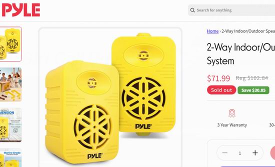 超级白菜!Pyle 300瓦 室内外防水 双向全频音箱(1对)1.9折 26.99加元清仓!