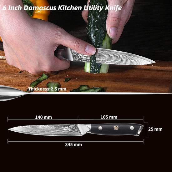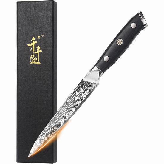 白菜价!历史新低!千丰盛 6英寸 67层锻造 VG10大马士革 多用途厨房刀2.5折 12.74加元清仓!