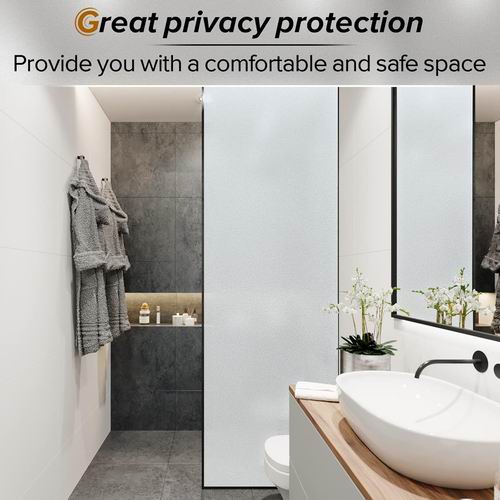 这款磨砂窗户隐私膜提供顶级隐私保护,阻挡 84% 的 UVA 射线和 99% 的 UVB 射线。保护您的皮肤免受有害辐射照射,减少家具褪色和老化,让家居更加舒适。,采用静电吸附技术,安装简便,无需胶水。适合家庭、厨房、办公室和出租公寓,轻松提升窗户的装饰性和功能性,让您的生活更加舒适、安全。