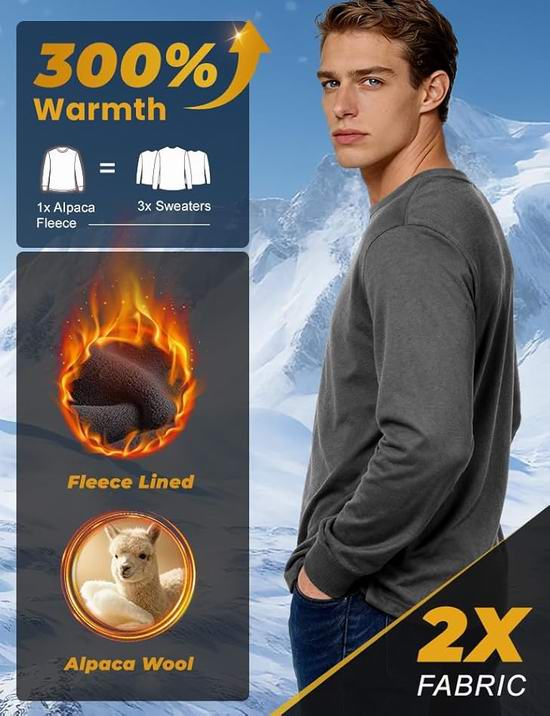 超级白菜!历史新低!Rahhint 羊驼毛 抓绒衬里 男式羊毛衫1.6折 9.9加元清仓!5色可选!