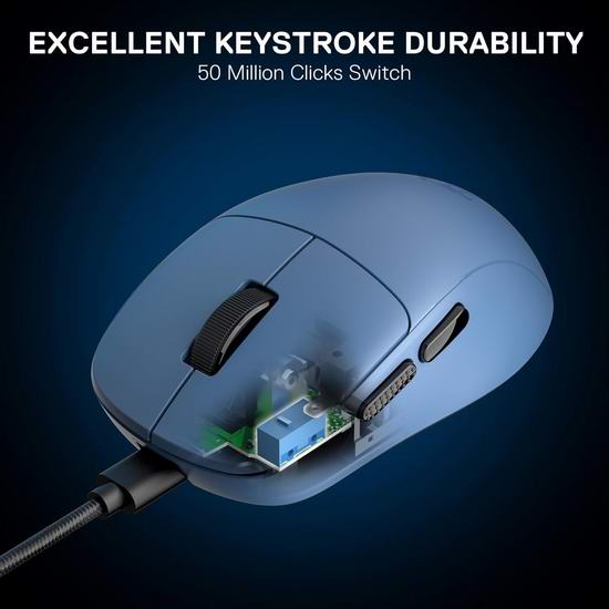 此款游戏鼠标支持5档可自定义 DPI 设置(400/800/1600/2400/3200),轻松切换不同游戏需求。此外,还可通过软件处理 100-24000 之间的 DPI 设置选项。配备5个可编程按键均可编辑,并可自定义战术按键绑定,满足您在任何游戏或工作中的需求。2 个侧边宏按键为您带来更佳的游戏和工作体验。超轻设计,仅重37克,结构坚固耐用,提供更快更精准的操控。拥有 1000 Hz 的轮询率、300 IPS 的响应速度和 80G 的重量,可提供快速响应时间,确保鼠标与电脑之间即时无延迟的通信。