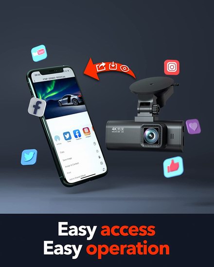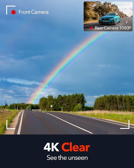 此款行车记录仪支持前侧4K(3840*2160P)+后侧1080P视频录制,前侧170°超大广角镜头,后侧140°,6层光学镜头,F1.5超大光圈,支持WiFi+GPS,可通过手机查看和下载已录制的视频、行车路线和实时速度,3英寸屏幕,前镜头4K超高清录像,后镜头1080P全高清录像,完整清晰几乎无死角捕捉行车画面,具有WDR + HDR技术,整体提高图像亮度,即使在暗光条件下,也能拍出明亮的画面。重力感应,在发生事故时自动锁定重要档案,不被循环录像覆盖,具有停车自动检测录像模式。附送32GB Micro Sd/TF储存卡。