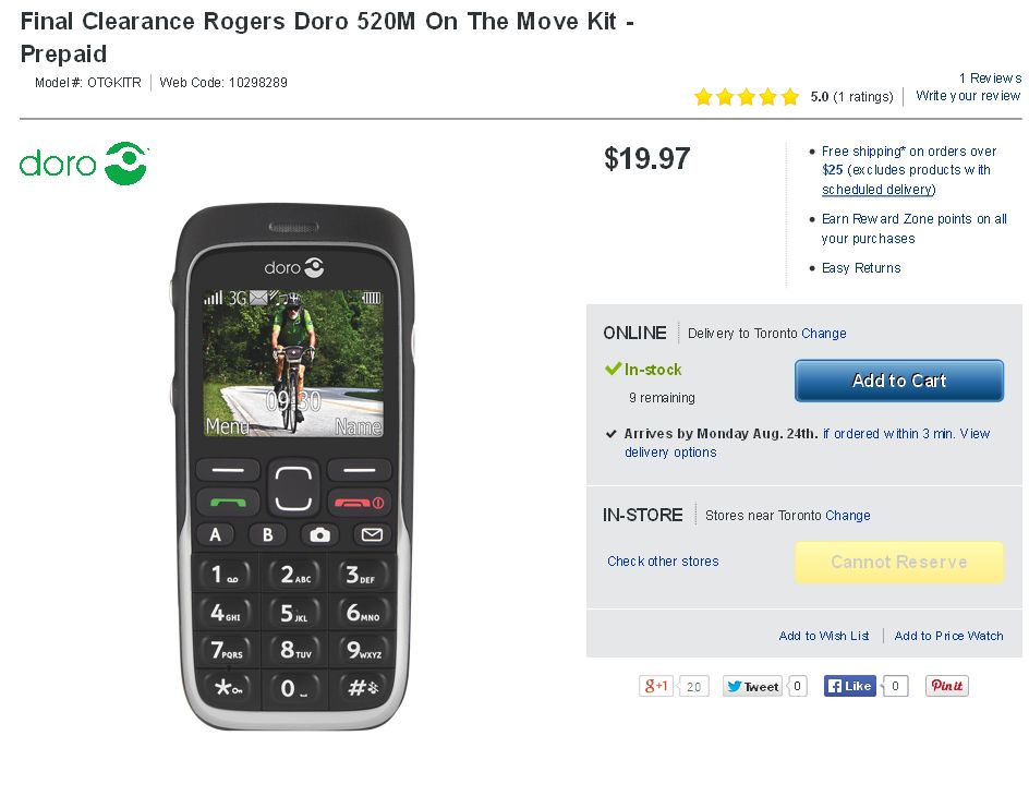 Kit includes Doro 520M bar phone, a $50 prepaid voucher, car and wall chargers, and protective phone case