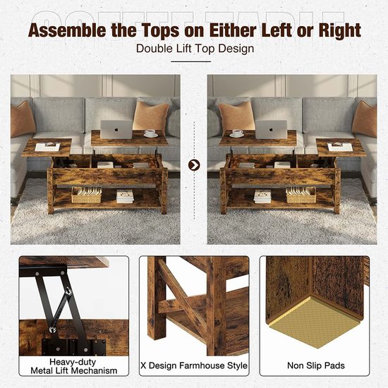 Rolanstar 可升降桌面 复古客厅茶几/咖啡桌5.5折 149.98加元包邮!4色可选!