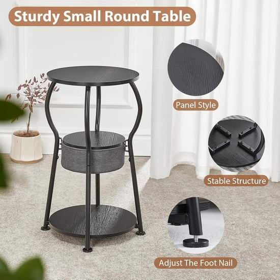 历史新低!ZEXVIDA 带储物蓝 三层圆形边桌/床头柜4.3折 19.99加元!