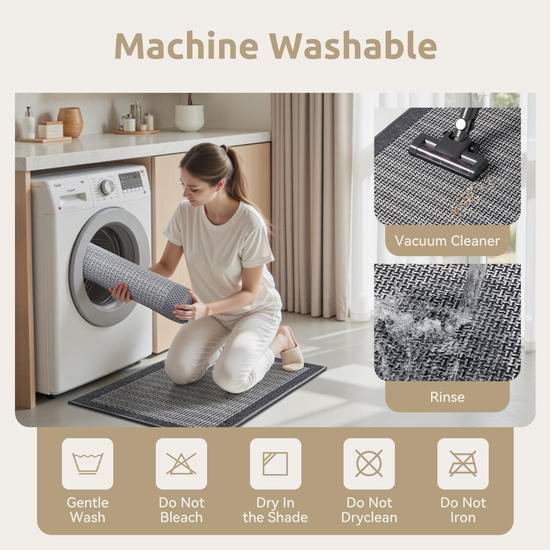 这款浴室地垫采用田园风格的编织设计,为您的生活空间增添氛围感,轻松融入厨房、浴室等任何环境。地垫接触水后能瞬间吸收水分。踩上去后,潮湿痕迹会立即消失,留下神奇般的干爽表面。背面采用耐用橡胶底,可牢牢抓住潮湿光滑的表面。可机洗,轻松去除污渍、异味和灰尘。日常保养只需用湿布擦拭或用淋浴喷头冲洗即可。