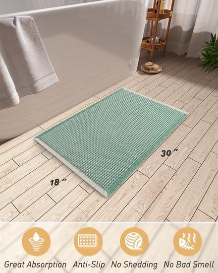 这款华夫格浴垫采用独特时尚的设计,编织工艺使其非常柔软,吸水性极佳,让您的浴室地板保持干燥,采用防滑橡胶背衬和HMA热熔胶,能够在各种地板上提供牢固的抓地力,易于清洁,可机洗。尺寸为46X77厘米。