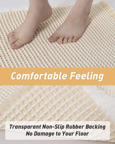 这款华夫格浴垫采用编织工艺,使其非常柔软,并将时尚与耐用完美融合,吸水性佳,可机洗。采用防滑橡胶背衬和HMA热熔胶,隐形可触,能够在各种地板上提供牢固的抓地力,并且易于清洁。尺寸为46X77厘米。