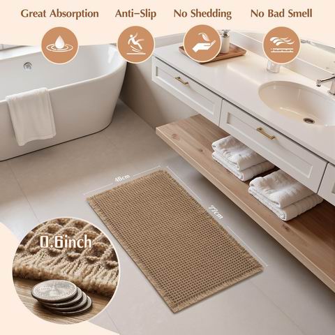 这款华夫格浴垫采用编织工艺,使其非常柔软,并将时尚与耐用完美融合,吸水性佳,可机洗。采用防滑橡胶背衬和HMA热熔胶,隐形可触,能够在各种地板上提供牢固的抓地力,并且易于清洁。尺寸为46X77厘米。