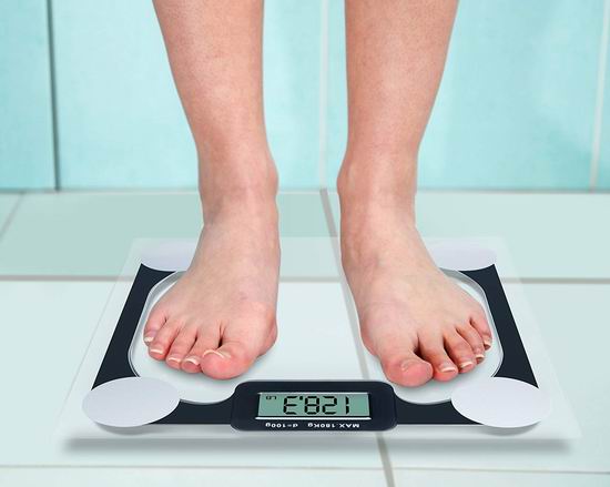时尚简洁设计,防滑钢化玻璃台面,内置高精传感器,自动校准,感应式自动开关,踩上去即可立即读数。为了精确测量,请放置在坚硬,平坦的地面上使用,并站立于中心位置。