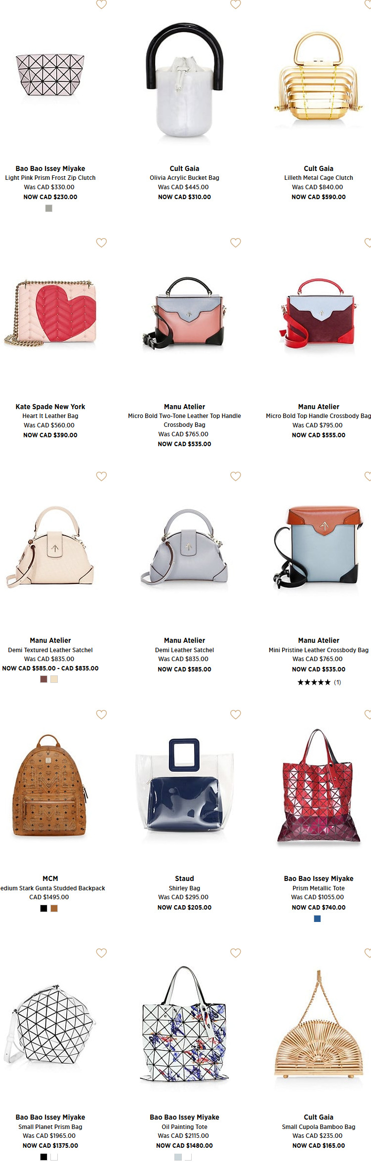 Saks Fifth Avenue网店销售,精选三宅一生、Manu Atelier、MCM等品牌美包 7折优惠,部分款低至5.3折,满100加元包邮,无关税。点击进入订购页面。