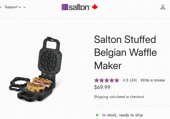 超级白菜!历史新低!Salton STUFFED WM2105 二合一华夫饼机2折 14加元清仓!