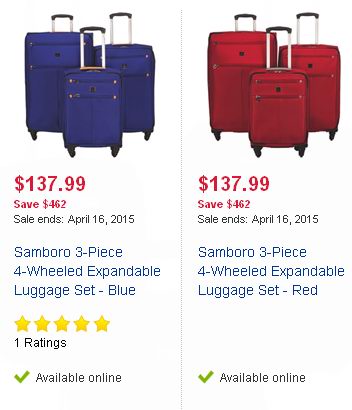 Set includes 28" expandable upright spinner with 93-litre + 8L capacity, 24" expandable upright spinner with 63L + 7L capacity and 19" carry-on spinner with 33L capacity