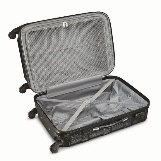 采用ABS树脂材质,独特纹理表面,美观大方,超级耐磨防刮,可延伸扩展容量,配备TSA海关锁和4个万向轮,适合长途出游使用,本套装内含20寸、24寸行李箱各一。