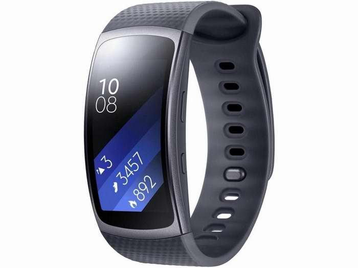 Gear Fit 2拥有一块1.5英寸的AMOLED触控显示屏,在暗黑色的背景下,上面的内容颜色鲜艳、富有光泽、响应速度很快。佩戴起来非常舒适,尤其是在睡觉的时候进行睡眠追踪,也不会有任何不适感。Gear Fit 2上有两个物理按钮,分别是电源/Home键和返回键,而背面则是光学心率传感器。Gear Fit 2腕带本身由柔性材质打造,与许多可穿戴设备类似。