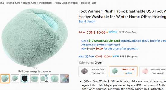 超级白菜!Sanpyl USB电加热 暖足器/暖脚宝1.4折 10.09加元清仓!
