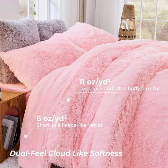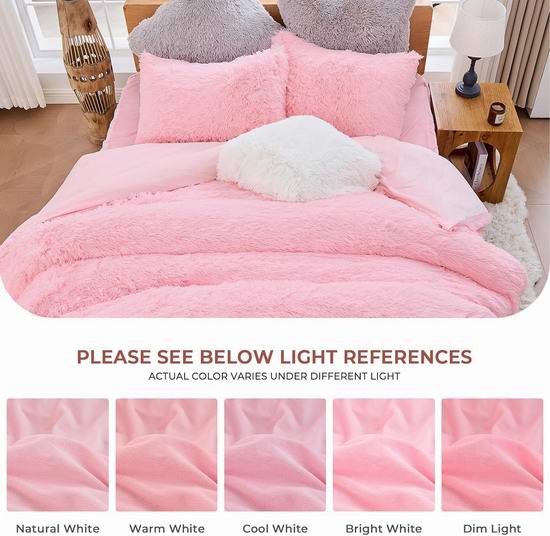 这款毛茸茸的被套正面采用超蓬松长绒人造毛,背面采用短绒绒状天鹅绒,带来双面不同的舒适感、如云朵般柔软的触感,以及在寒冷夜晚的卓越保暖性。双隐藏式拉链方便拆卸和清洗,8 个内部角部系带可固定被芯,防止移位或堆积,使床铺均匀受热,带来安稳睡眠体验。全年适用,夏季可用作空调房的毯子。纯色设计使其易于搭配各种卧室装饰,既增添温暖感,又提升视觉美感。清洗时,将毛绒被套翻过来,用冷水轻柔机洗,避免漂白和熨烫,以保持其柔软的质地。套装包括1被套和2枕套。