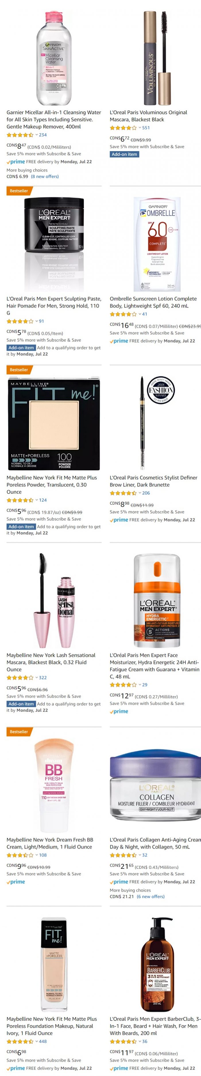 Amazon网店销售,精选 Maybelline、L'Oreal、Garnier等美妆护肤品 满25加元享受7折优惠!会员享受额外8.5折(非会员可点此免费试用30天会员),满35加元包邮。点击进入订购页面。