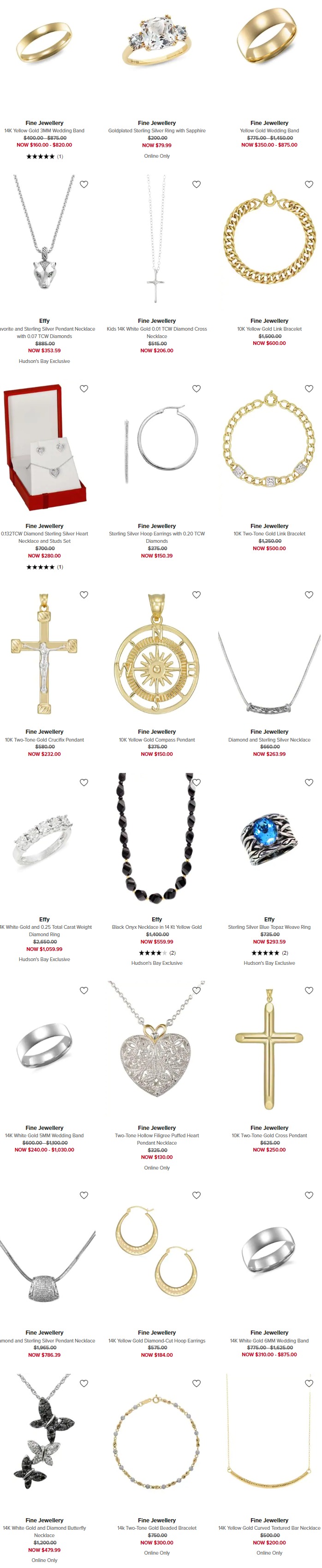 The Bay网店销售,精选 Effy、Fine Jewellery 品牌金银钻石珠宝首饰3折起清仓,使用折扣码:DEAL 额外7.5折,全场满99加元包邮,选择店内取货免邮,点击进入订购页面。