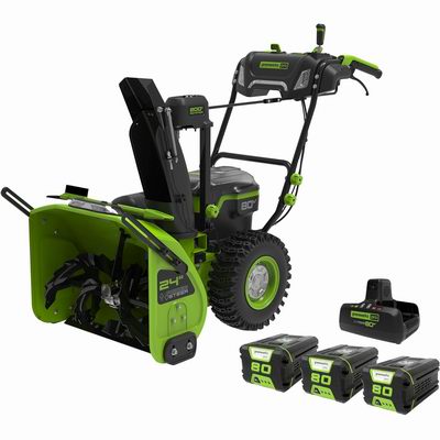 Greenworks 24英寸 双阶 80伏 充电式无绳铲雪机(含3锂电池)7.9折 2379.18加元(原价2999加元)续航长达90分钟!