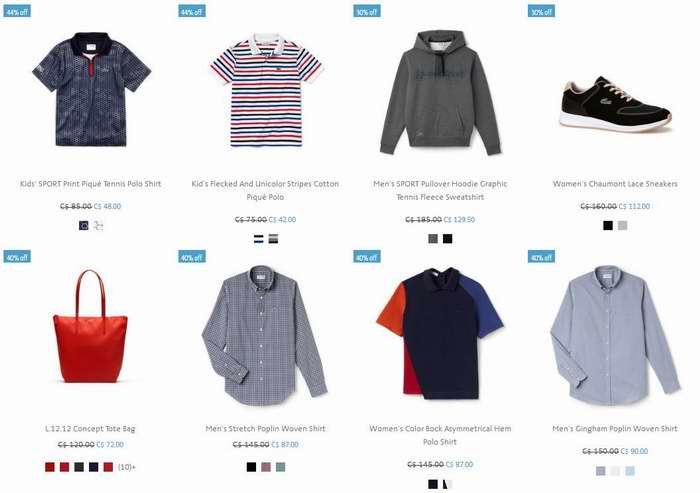 Lacoste网店销售,精选282款成人儿童服饰、鞋子、美包等4.5折起限时特卖,运费8元,满150元包邮,点击进入订购页面