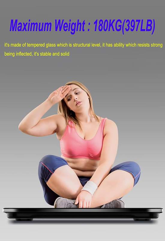 采用坚固耐用的钢化玻璃,圆角设计安全可靠,具有磅 (LB) 和公斤 (KG)两种重量单位。站上体重秤,体重秤自动启动,离开时,自动关机。最大承重400磅/180公斤,最小称重0.2公斤(0.44磅)。