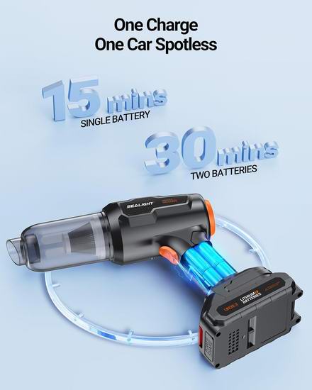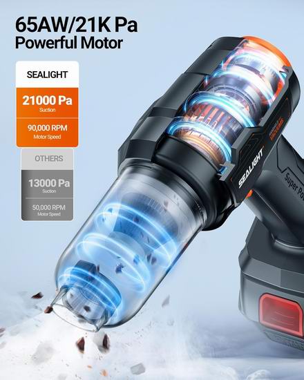白菜价!历史新低!SEALIGHT 18V/120W 21000pa超强吸力 7合1 车载无线吹扫机/吸尘器3折 29.99加元!