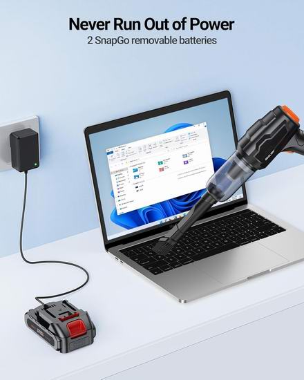 搭载高速无刷电机,提供120W/30000Pa的强劲吸力,吸力提升75%,轻松吸除顽固的沙粒、灰尘和碎屑。采用7合1设计,扁平吸嘴和毛刷可清洁缝隙和灰尘;多功能吸嘴可轻松吸除宠物毛发;长短吸嘴方便烧烤和充气床垫;吸尘口可排出集尘袋中的气体。升级精密钢制滤芯,可重复使用。集尘杯容量增加了50%,达到180毫升。配备HEPA高效过滤系统,可有效过滤细小灰尘和杂质。整个滤网和集尘盒均可水洗并重复使用。采用全新双电池设计,续航时间长达30分钟,远超同类产品15分钟。吸尘器仅重2.6磅,采用手持无线设计,彻底摆脱电线的束缚。